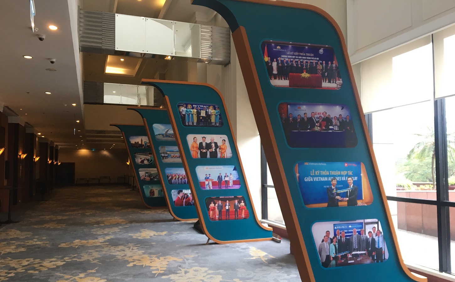 Khu vực trưng bày ảnh được thiết kế tựa như những chiếc cánh máy bay nhằm tôn vinh những sự kiện nổi bật quan trọng trong năm vừa qua của chi nhánh miền Bắc