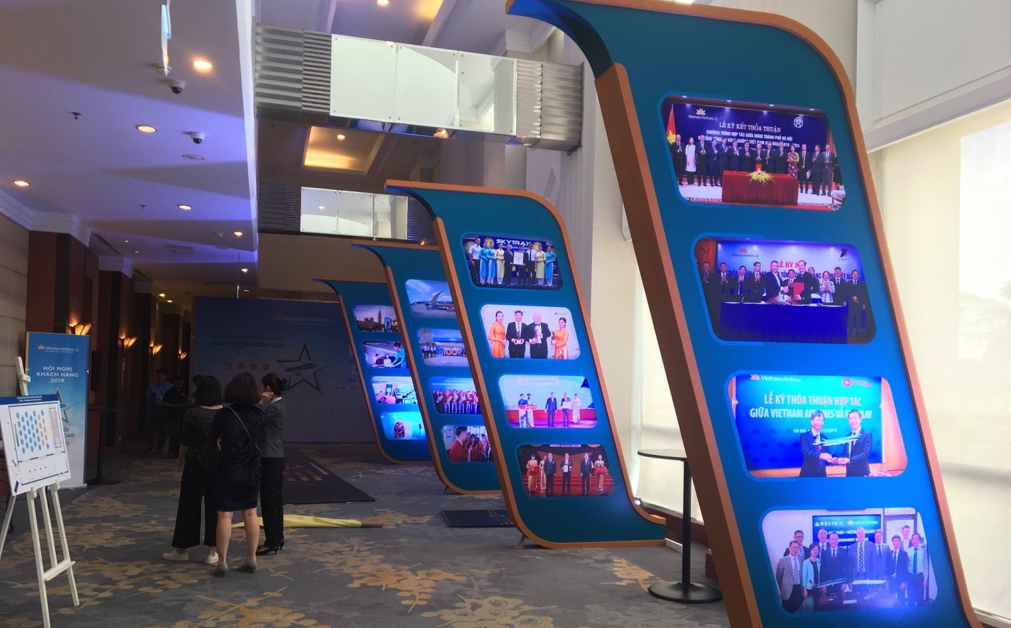 Khu vực trưng bày ảnh được thiết kế tựa như những chiếc cánh máy bay nhằm tôn vinh những sự kiện nổi bật quan trọng trong năm vừa qua của chi nhánh miền Bắc