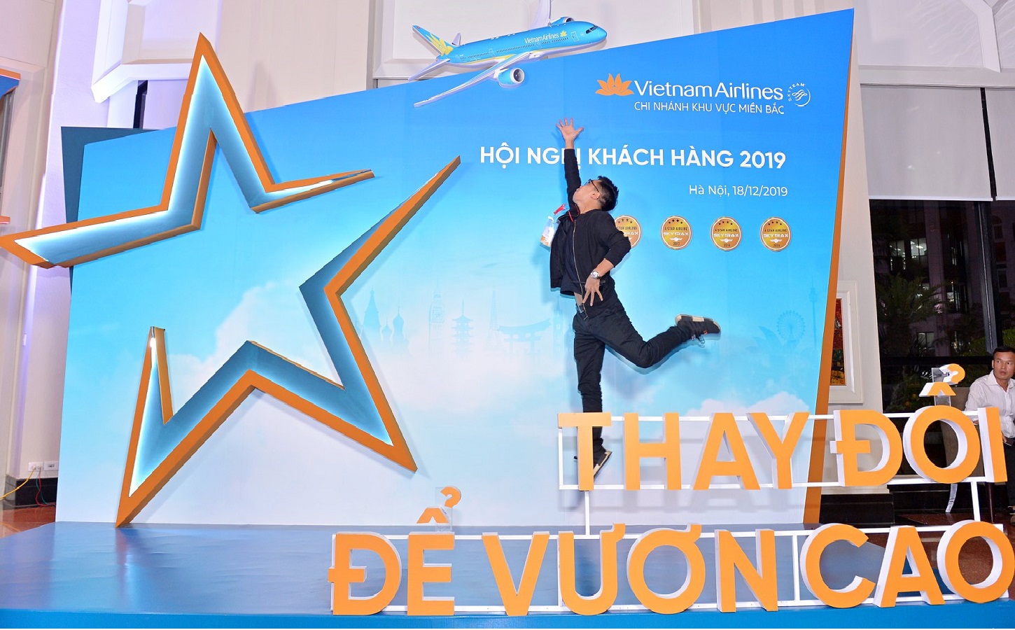 Hình ảnh tone bầu trời tinh tế, mạnh mẽ thể hiện thể thế mạnh của VNA đã được tái hiện lại trên sân khấu chính